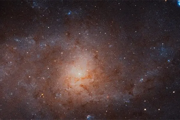 Este mosaico, segunda mayor imagen publicada por Hubble, muestra la región central de la galaxia del Triángulo y sus brazos espirales interiores, donde se aprecian millones de estrellas, cientos de cúmulos estelares y brillantes nebulosas.