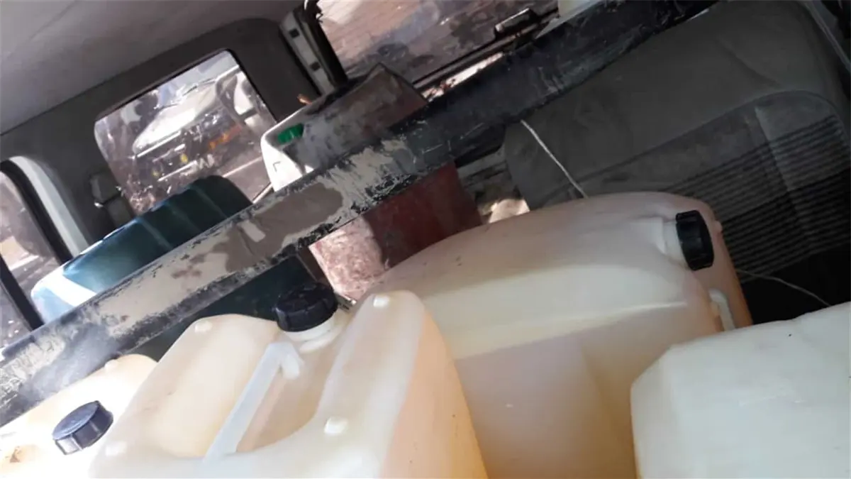 Minutos después, solicitaron una grúa para sacar la unidad de la obra hidráulica, y al estar fuera, se percataron que en el interior habían garrafones con gasolina, misma que dio un total de casi 600 litros de gasolina.
