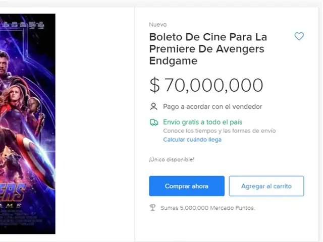En sitios de compra y venta de artículos como Mercado Libre y en Facebook, diversas personas venden los boletos para la premier de Avengers: Endgame, en precios que van de los 200 hasta los tres mil 200 pesos, incluso hay publicaciones donde se ofertan hasta en 70 mil pesos, a pesar de que el costo original en taquilla es de 50 hasta los 120 pesos.
