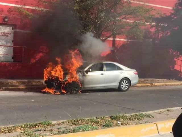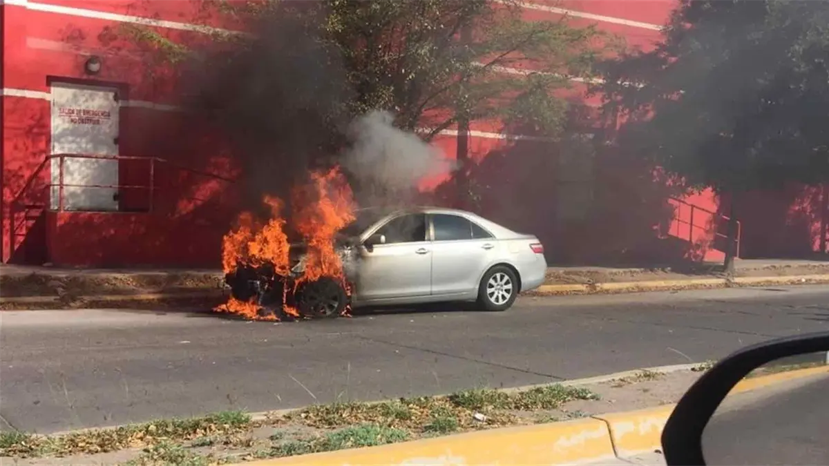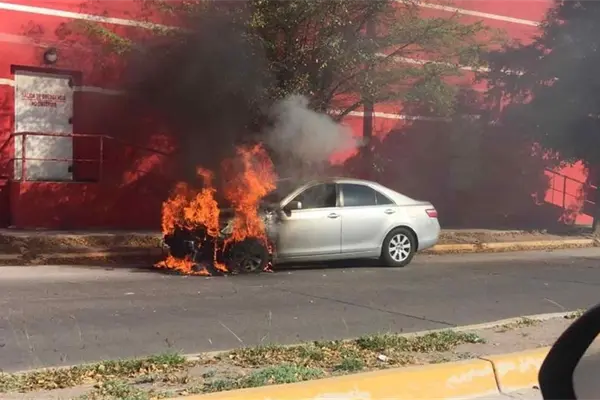 Se estableció de un vehículo Toyota Camry, color gris, modelo reciente, circulaba con dirección al norte cuando un aparentemente un cortocircuito provocó que comenzara a incendiarse, por fortuna quien conducía logró detener la marcha y abandonó la unidad, ya que rápidamente el fuego consumió gran parte del vehículo.