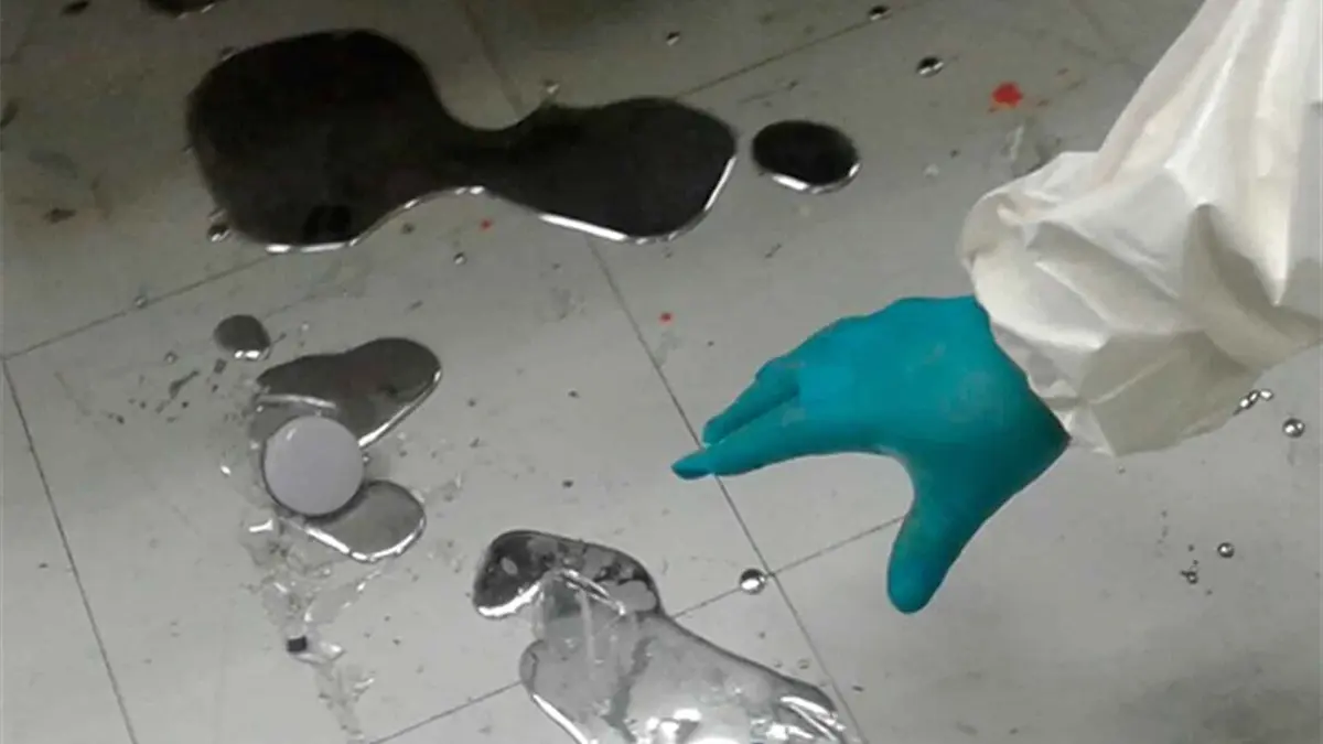 El hecho se registró esta tarde, cuando un termómetro que estaba en proceso de ser restaurado se cayó al suelo, debido a un descuido del operador del aparato, generando la fuga del metal líquido.