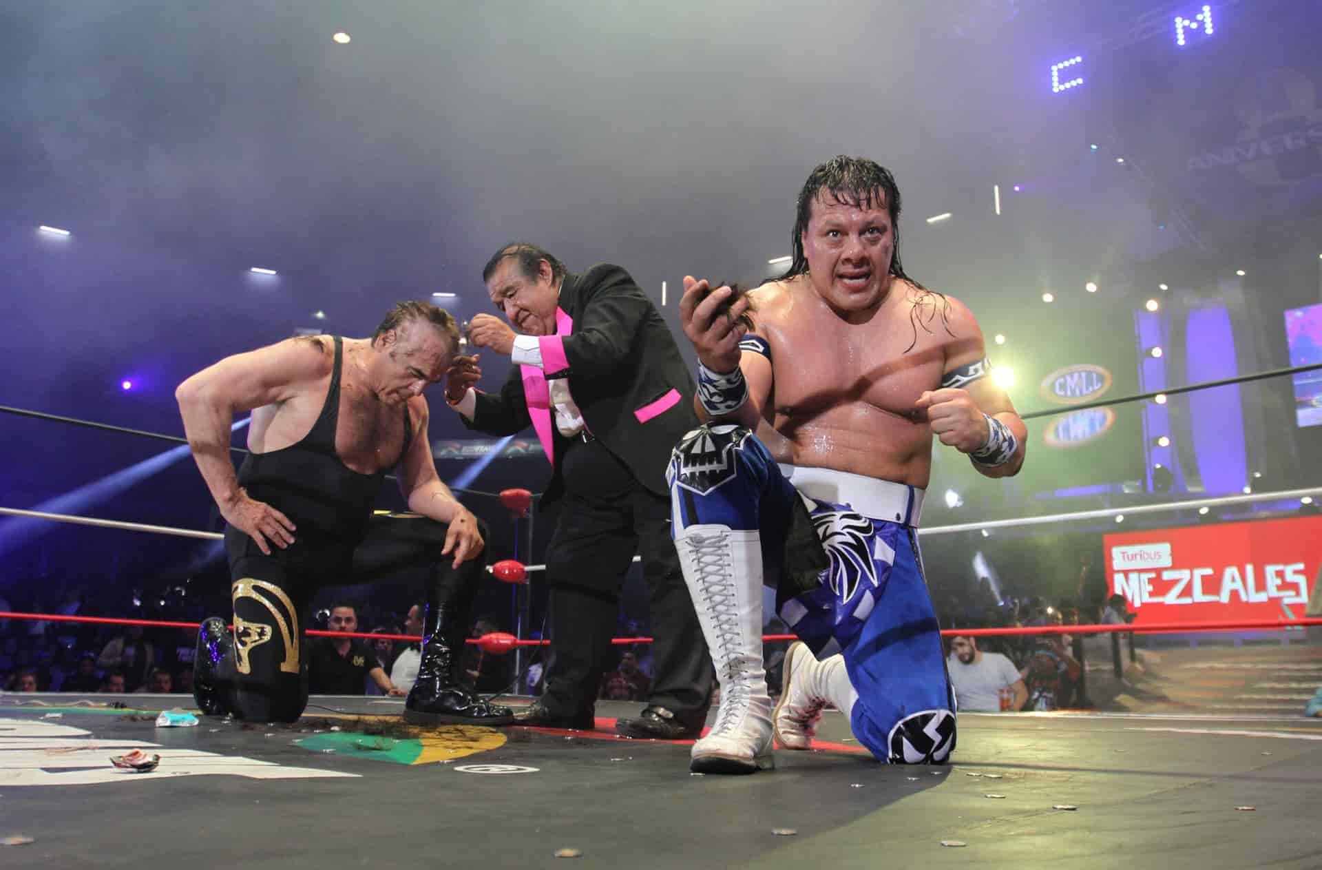 Ciudad de México.- Último Guerrero sobrevivió a marrullerías, un faul y hasta a la intervención de los sobrinos de Máscara Año 2000, para sorprenderlo, imponerse en tres caídas y dejarlo sin cabellera en la lucha estelar del “Juicio final” en la Arena México.
