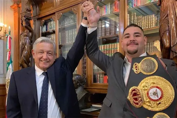 Ciudad de México.- El campeón del mundo de los pesos pesados, el mexicano Andrés Ponce Ruiz (conocido como Andy Ruiz Jr.) visitó la mañana de este martes desde el Palacio Nacional, al presidente Andrés Manuel López Obrador, con motivo de la gira que realiza el boxeador en el país después de la gesta que protagonizó el pasado 1 de junio en el Madison Square Garden de Nueva York, en el que se convirtió en el primer mexicano y segundo latinoamericano en la historia en alcanzar el título mundial de peso pesado de boxeo.