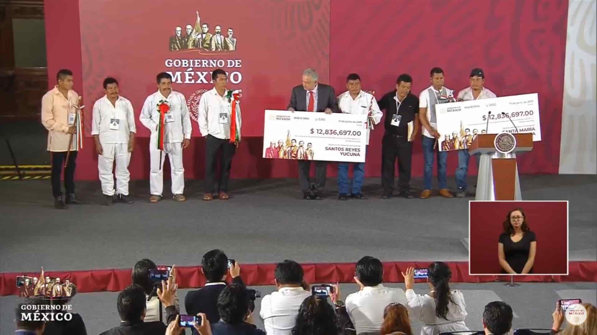 Entrega AMLO a dos municipios de Oaxaca 28.4 mdp recaudados en subasta