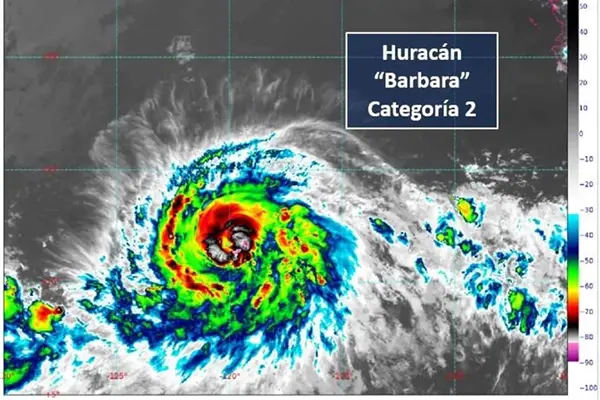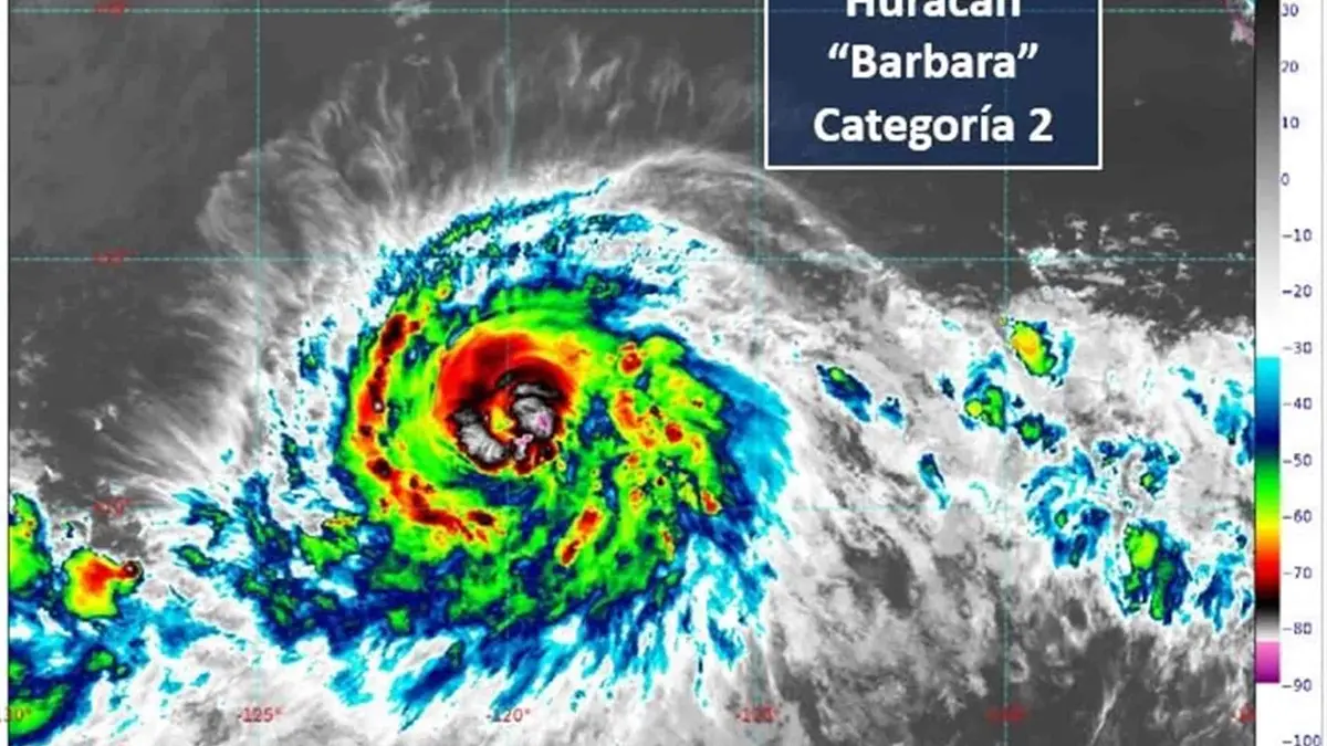 Ciudad de México.- Bárbara se intensificó rápidamente a huracán de categoría 2 en el Océano Pacífico, mientras se aleja de las costas nacionales, reportó el Servicio Meteorológico Nacional (SMN).