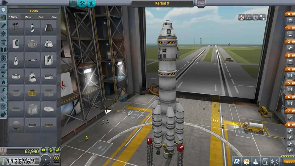 Kerbal Space Program es esencialmente un simulador de programas espaciales. La simulación es completa, desde el financiamiento e investigación de tecnologías, hasta lanzar (y perder en el espacio) naves diseñadas enteramente por el jugador. Los sistemas de órbita, la fuerza gravitatoria de los planetas, el estrés que sufren las partes de la nave por la potencia del motor, todo es calculado y simulado por el juego.