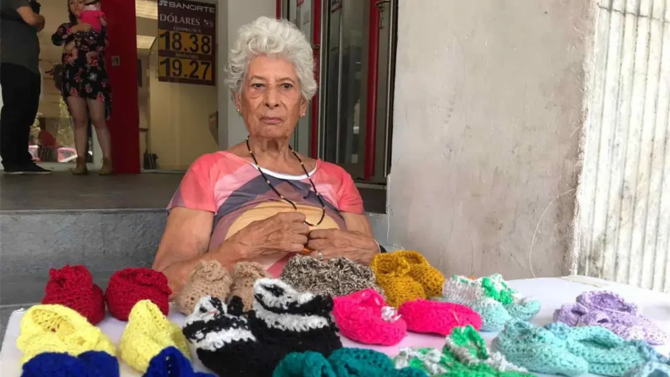 Culiacán, Sin.- A los 12 años, María Hilda Martínez Ponce, aprendió a tejer viendo a su mamá y abuela, ahora con 81 años de edad hace zapatitos de estambre para bebé y con ello sentirse útil y ganar un poco de dinero.