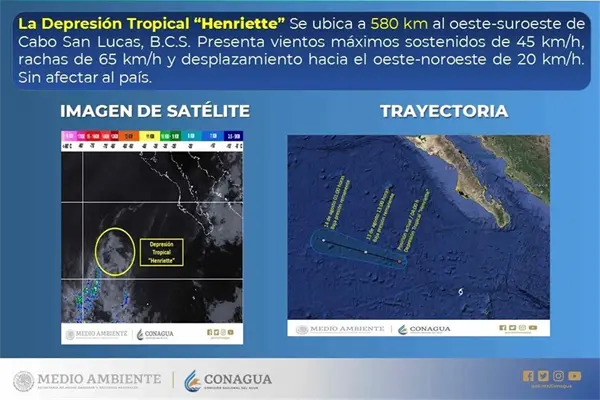 Ciudad de México.- El ciclón tropical “Henriette” se degradó a depresión tropical en el Océano Pacífico esta madrugada. El sistema no afecta las costas nacionales, informó el Servicio Meteorológico Nacional (SMN).