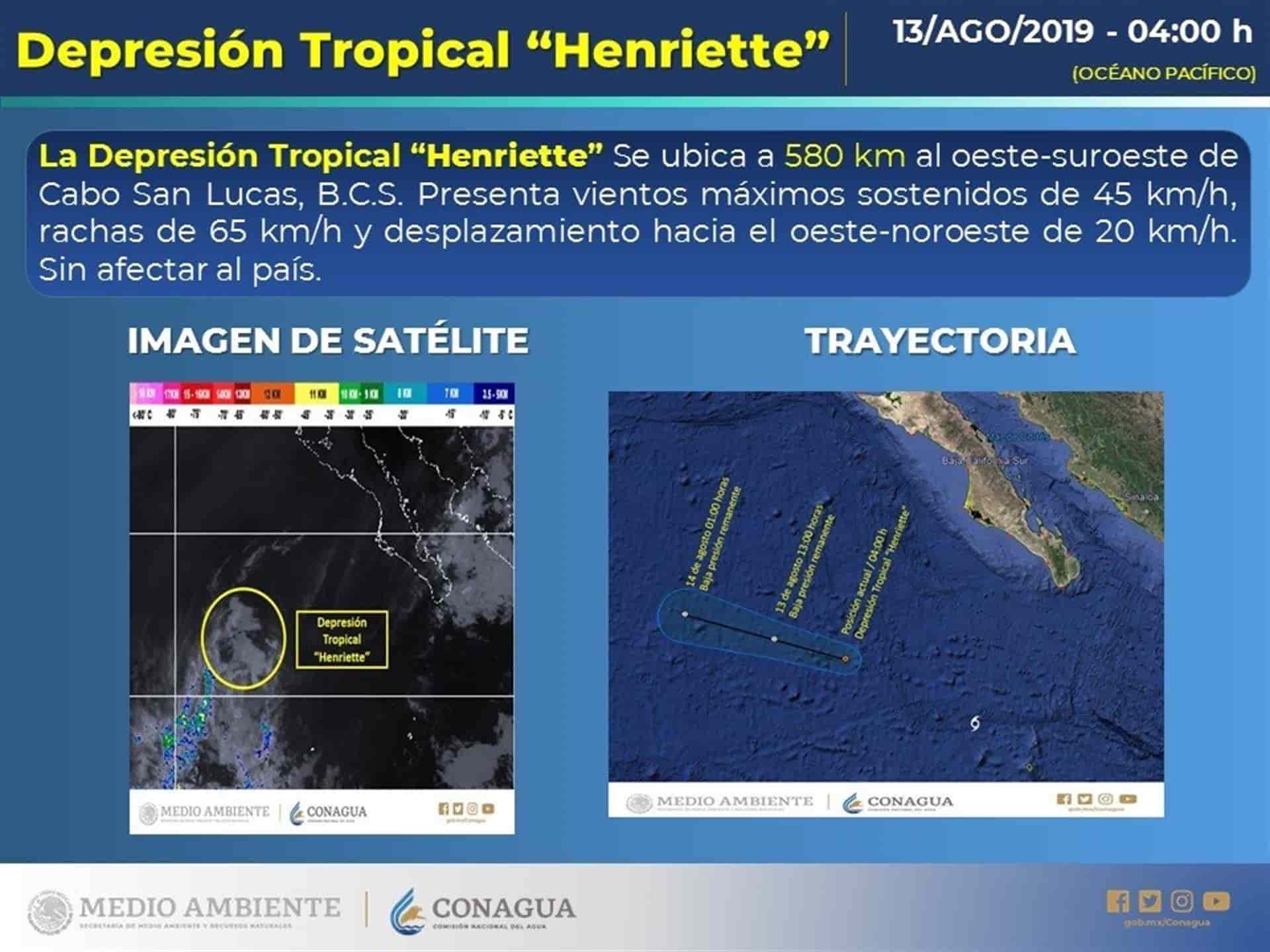 En su aviso de las 04:00 horas, el organismo indicó que la depresión tropical se ubica a 580 kilómetros al oeste-suroeste de Cabo San Lucas, Baja California Sur.