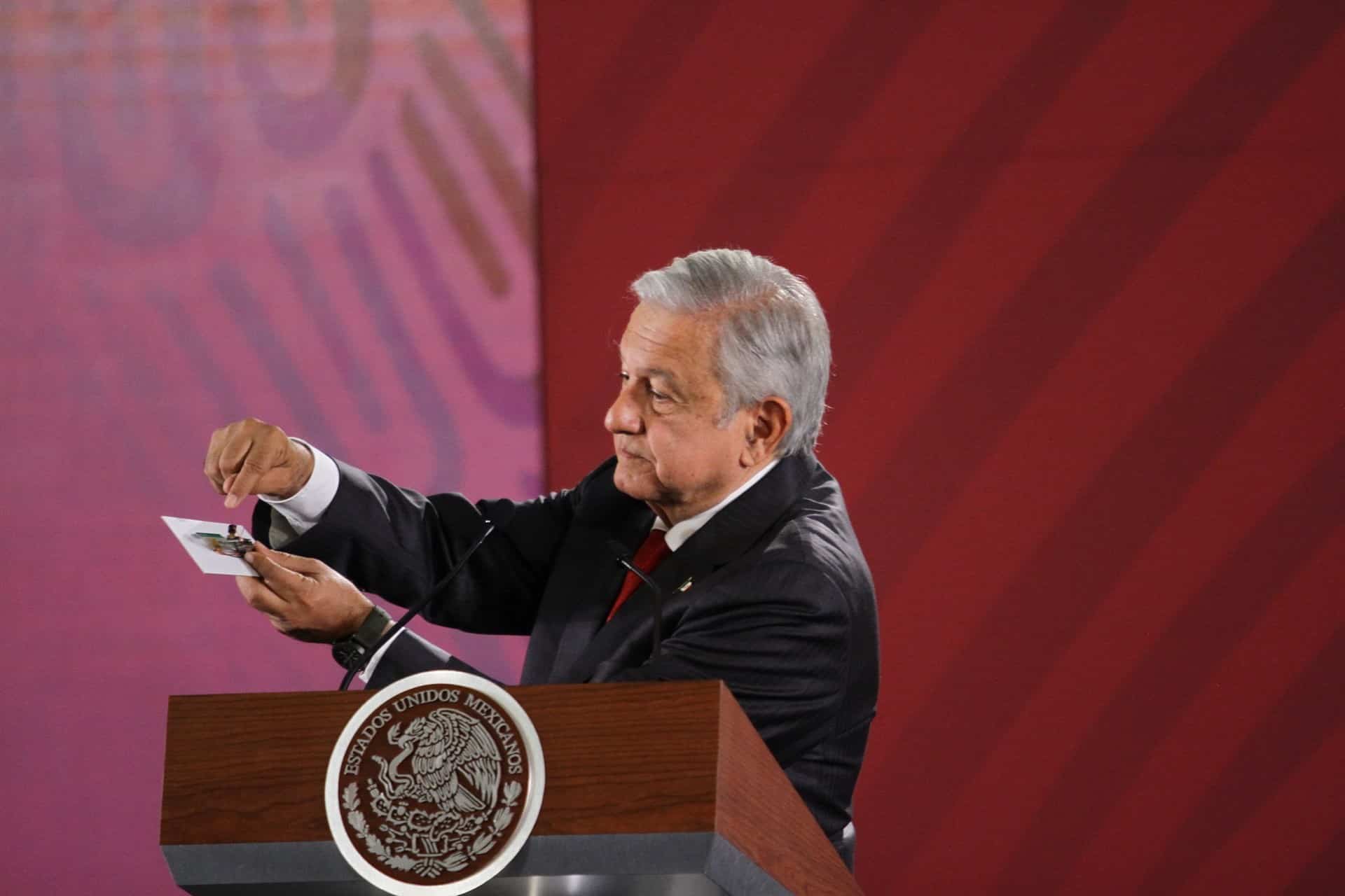 En su conferencia de prensa matutina, pidió a su coordinador de Comunicación Social, Jesús Ramírez, ir al despacho presidencial por el pequeño dispositivo y lo mostró ante reporteros y fotógrafos.
