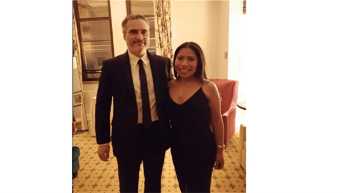 Ciudad de México.- La actriz mexicana Yalitza Aparicio, protagonista de la película Roma, compartió una fotografía con el actor estadunidense Joaquin Phoenix, quien interpreta al villano “Joker” en la cinta homónima, personaje que es el gran enemigo de "Batman".