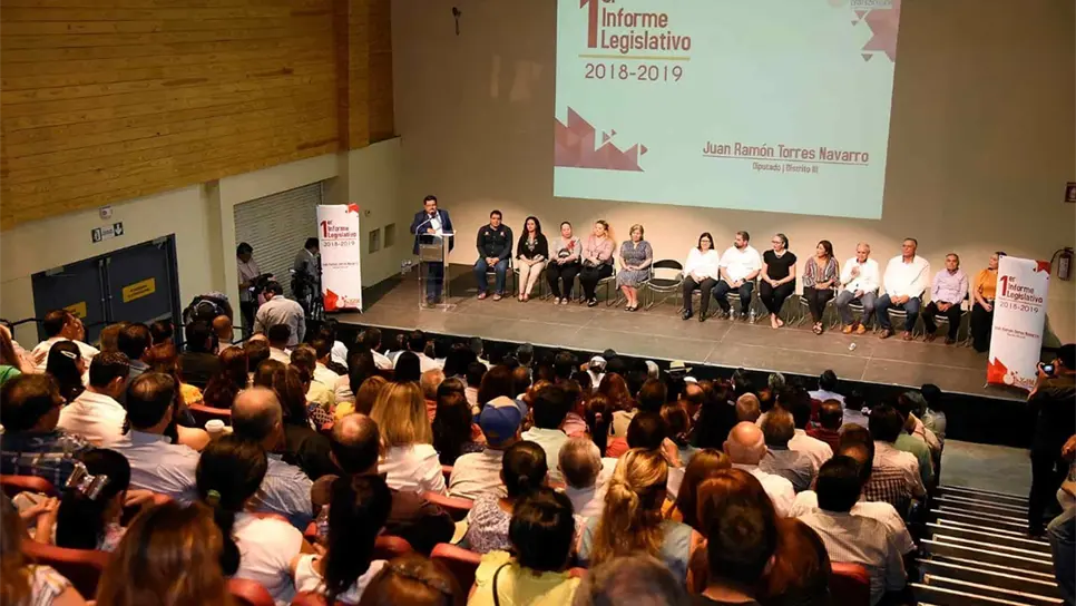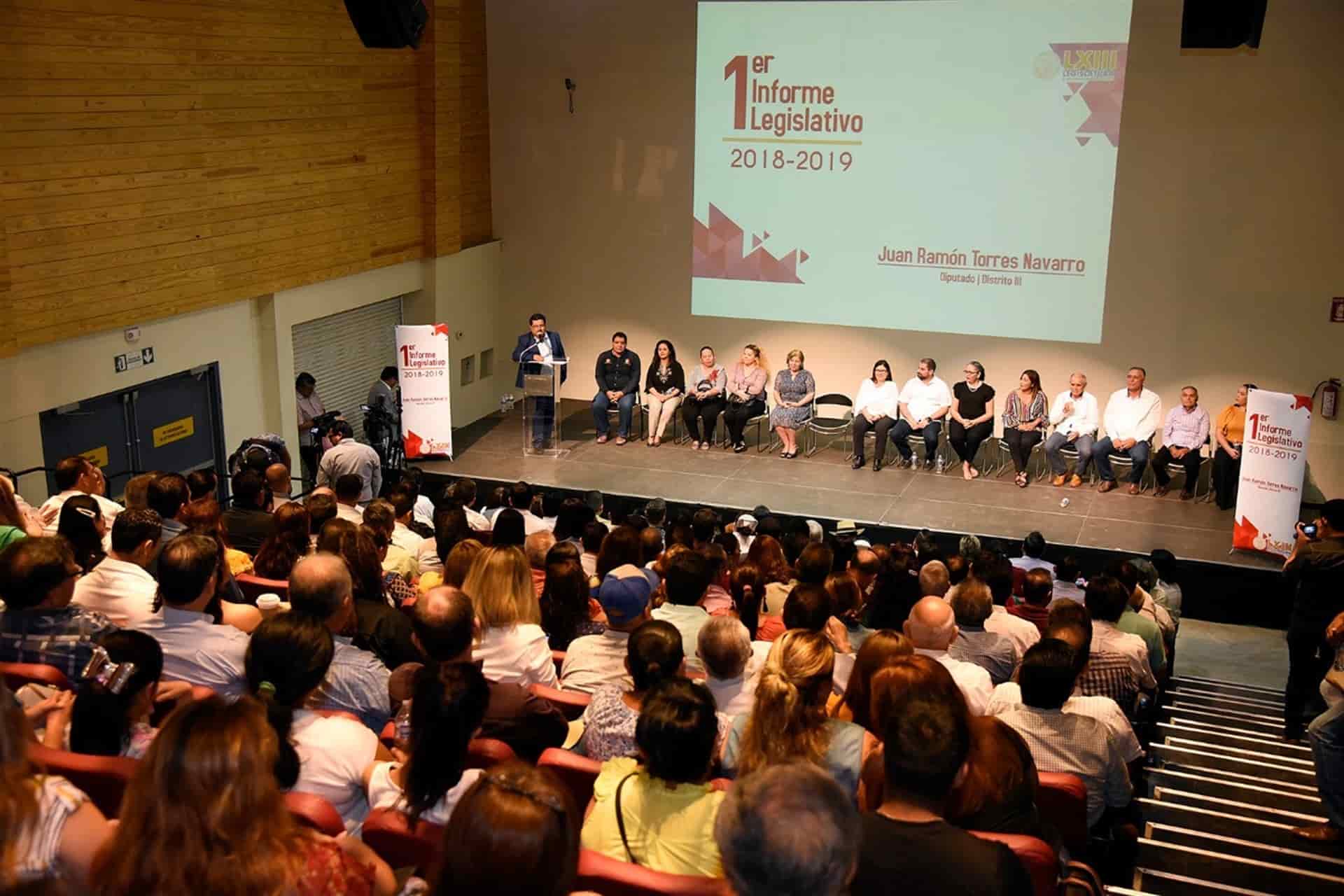 Los Mochis, Sin.- El Diputado de la LXIII legislatura del Congreso del Estado, Juan Ramón Torres Navarro, presentó su primer informe legislativo ante ciudadanos, simpatizantes, funcionarios de Ayuntamiento ver Ahome y miembros de Morena.