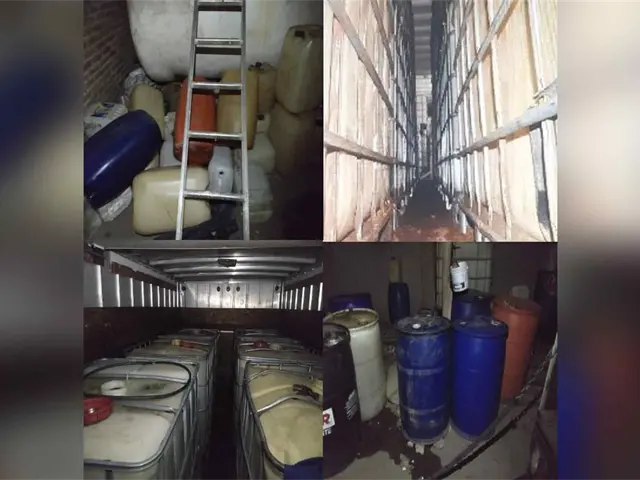 En una segunda diligencia, cumplimentada en la colonia Independencia, los agentes de la Policía Federal Ministerial aseguraron un inmueble y ocho mil 900 litros de la misma sustancia de procedencia ilegal, así como 25 contenedores y un vehículo.