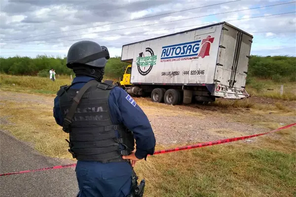 Peritos y policías de Investigación de la Fiscalía del Estado, realizaron los peritajes en el sitio donde quedó el camión. Iniciaron una carpeta de investigación.