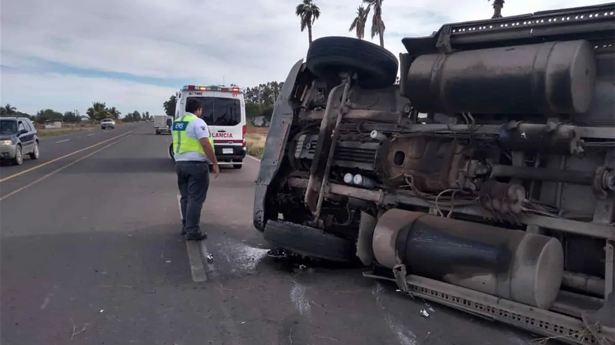 Vuelca tráiler con palmas cerca del ejido 18 de Marzo, Ahome