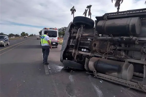 Al parecer, el conductor se bajó de la carretera y al intentar subir volcó la unidad, la cual quedó derramando aceite y diésel en el lugar.