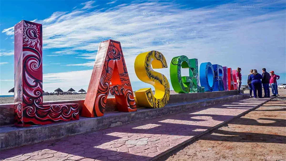 Cada una de las letras tiene imágenes del aves, pesca, olas, animales marinos y playa elaborados por el muralista Alexis Gutiérrez.