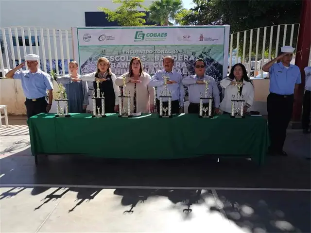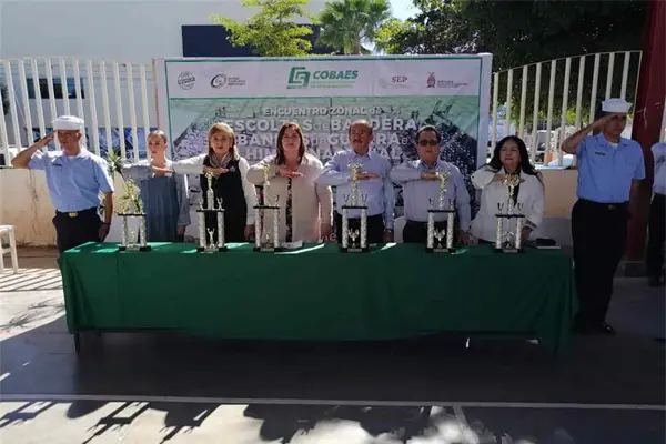 Los Mochis, Sin.- El Colegio de Bachilleres del Estado de Sinaloa (Cobaes) llevó a cabo concurso de Escoltas de Bandera, Bandas de Guerra y entonación de Himno Nacional, con la participación de 14 planteles de la zona norte.