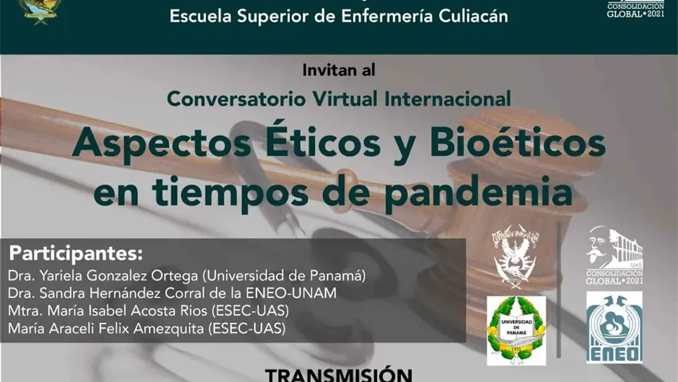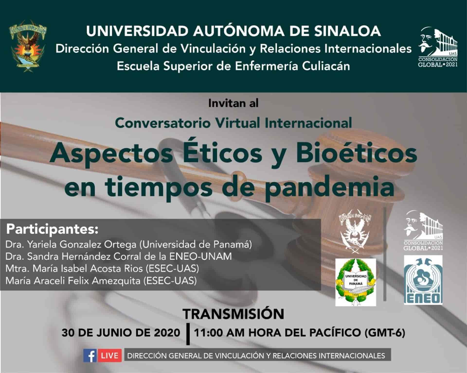 Como parte también de las actividades, para el día 30 de junio está contemplado el conversatorio virtual “Aspectos Éticos y Bioéticos en tiempos de pandemia”, con la participación de investigadores de la UAS, de la UNAM y la Universidad de Panamá.