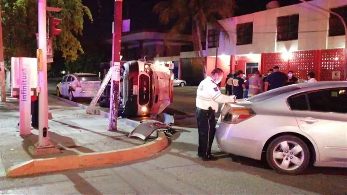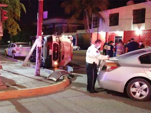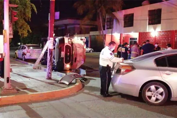 Los Mochis, Sin.- Importantes daños materiales y dos paramédicos con lesiones, fue el resultado de un aparatoso accidente que terminó en volcadura, registrado en el sector Centro de Los Mochis; los socorristas se trasladaban a brindar atención prehospitalaria en un servicio de emergencia.