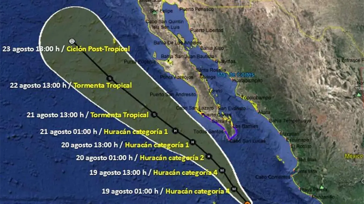 Sus bandas nubosas ocasionan lluvias puntuales intensas en Baja California Sur, Sinaloa, Nayarit, Jalisco, Colima y Michoacán, así como vientos fuertes y oleaje elevado en dichos estados.