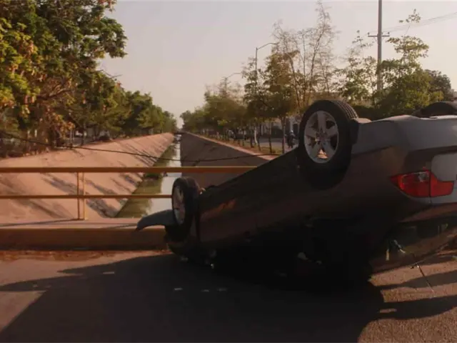 Tras el impacto, el vehículo quedó volcado justamente sobre el puente y con el frente hacia la obra hidráulica.
