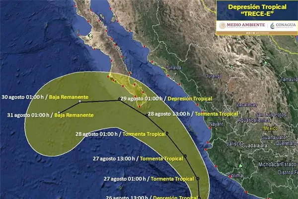 Actualmente no representa peligro de impacto directo para Sinaloa, se preve que este jueves 27 de agosto se convierta en tormenta tropical, con un pronóstico de lluvias puntuales intensas de 75 a 150 mm, con actividad eléctrica y rachas fuertes de viento, ocasionando para el resto de la semana lluvias fuertes en nuestro estado.