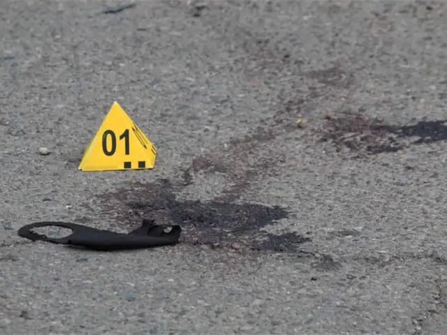 Rastros de sangre en el asfalto, al parecer del hombre atacado, fueron clasificados como evidencia, así como un cubrebocas color negro.