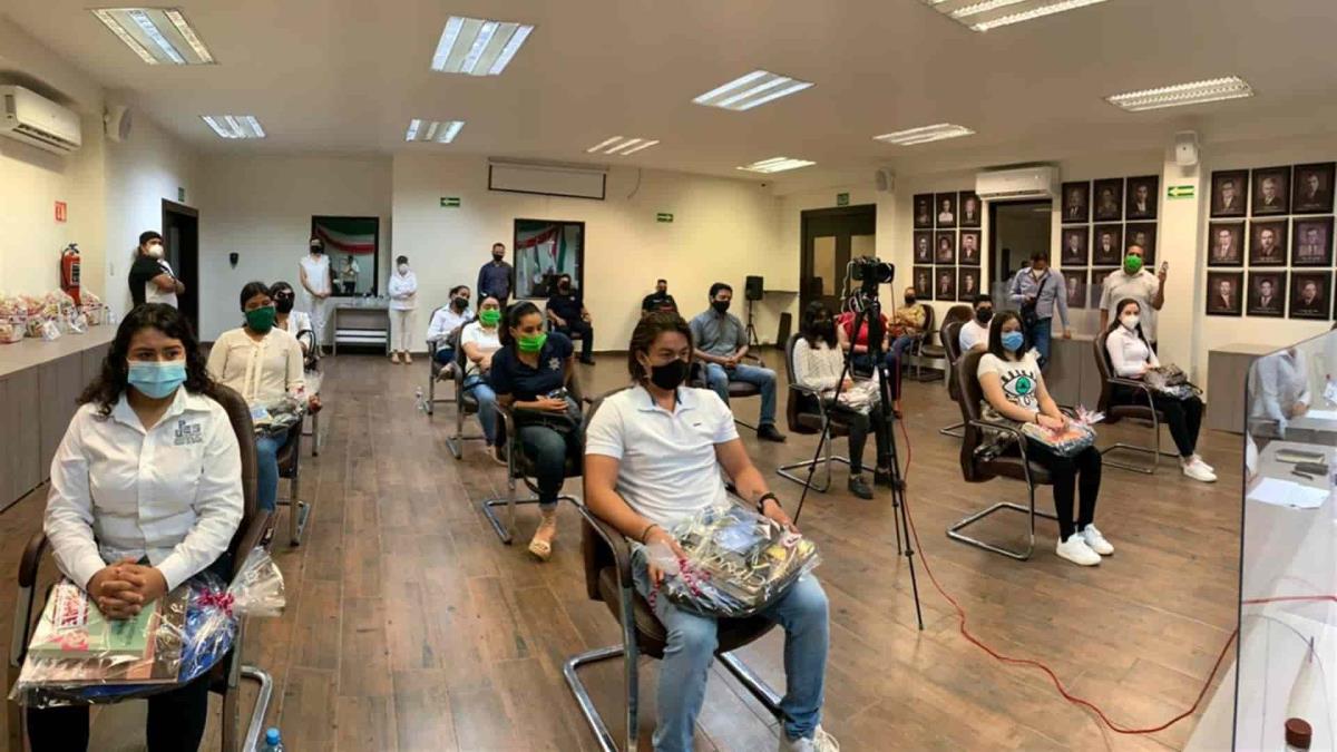 En el Salón de Cabildo fueron reconocidos estudiantes universitarios, quienes recibieron mochilas, libros, despensas y kits de salud.