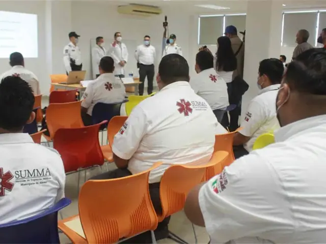Los Mochis, Sin. En diferentes temas, siendo el principal el identificar puntos viales de alto peligro de la ciudad reciben capacitación y actualización 25 paramédicos y operadores de vehículos de emergencia de (SUMMA) Servicio de Urgencias Médicas Municipales de Ahome.