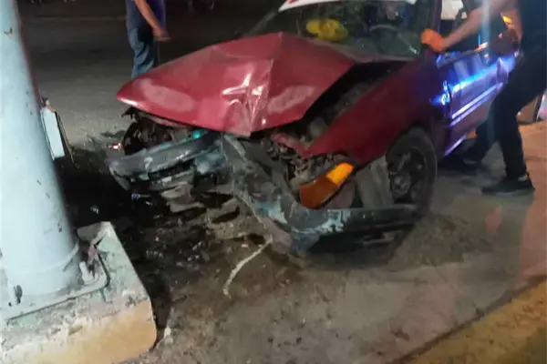 Trascendió que la unidad, una Ford Escort, color rojo, con calcomanías de Protección Civil, chocó contra una luminaria del camellón, destrozando la parte delantera del automóvil.
