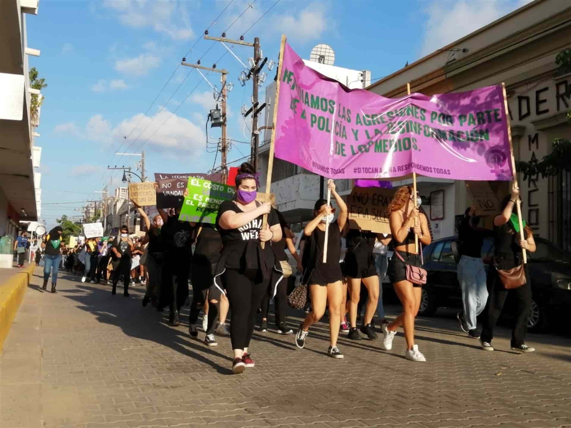 Mazatlán, Sin.- Un grupo de cerca de 200 mujeres feministas se manifestó pacíficamente ésta tarde en Mazatlán.