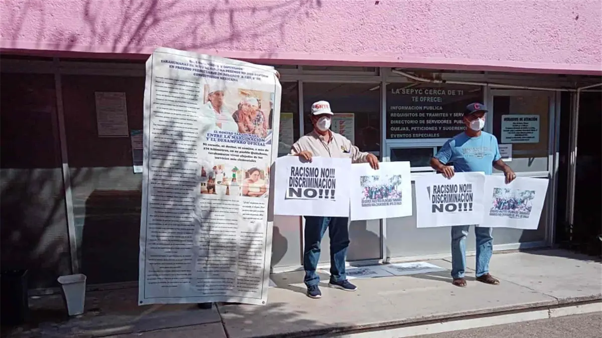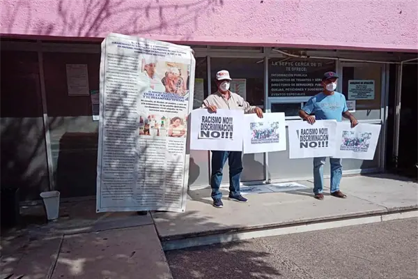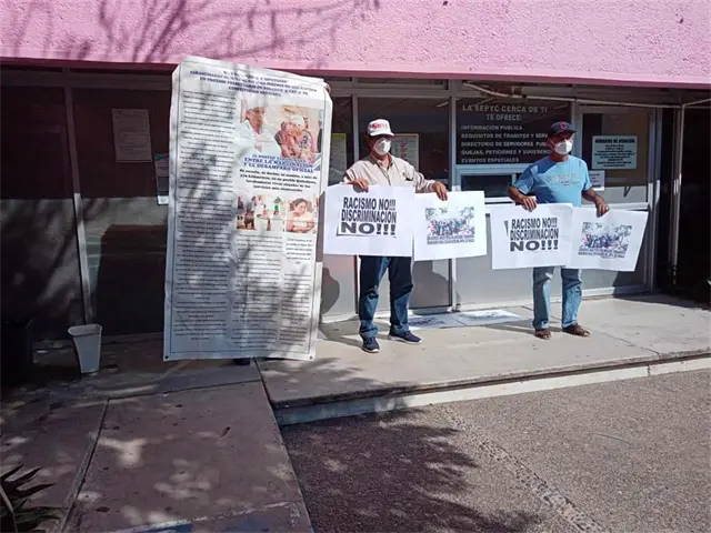 Cabe mencionar que durante la manifestación los jubilados portaron cartulinas con mensajes que decían “racismo no, discriminación no”, “exigimos maestros bilingües raramuris”.