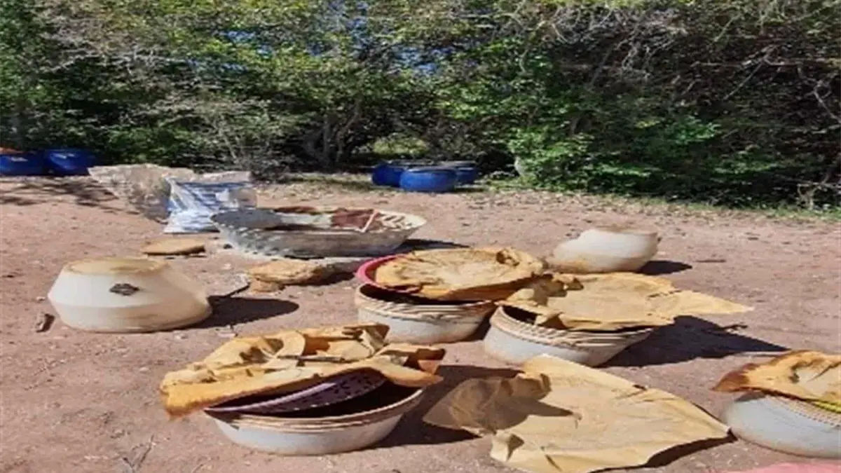 En el lugar se aseguraron alrededor de 529 litros y 21 kilos de opio, 10 litros de anhidrido acético, contenedores, así como prensas y costales, materiales que fue puesto a disposición del Ministerio Público Federal.