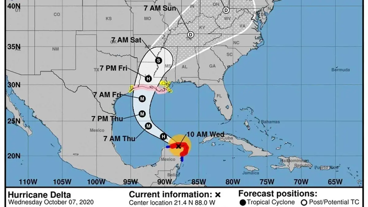 Pero, además, Delta descargará copiosas lluvias que pueden llevar a inundaciones repentinas y desbordes de ríos, propiciar la formación de tornados en Louisiana y Mississipi, y producir un fuerte oleaje en la parte norte y oeste del Golfo de México.