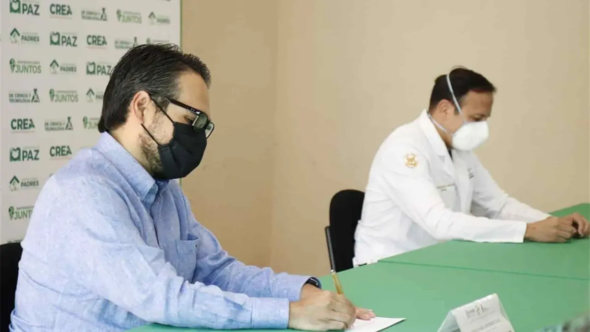 Sergio Mario Arredondo Salas, director general de Colegio de Bachilleres, y Sergio Saúl Irizar Santana, director del Hospital Civil de Culiacán, suscribieron el convenio donde se establecen las bases y lineamientos generales de coordinación y respaldo entre las partes.