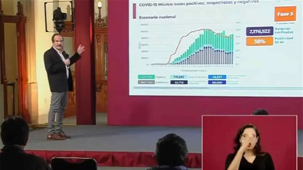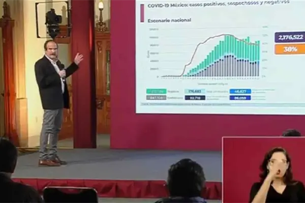 En la conferencia de prensa de este sábado 17 de octubre, sobre el seguimiento del desarrollo de la pandemia de Covid-19 en México, el director General del Centro Nacional de Programas Preventivos y Control de Enfermedades, Ruy López Ridaura presentó los datos en los que se observó que en las últimas 34 horas se contabilizaron un total de 355 nuevas defunciones.