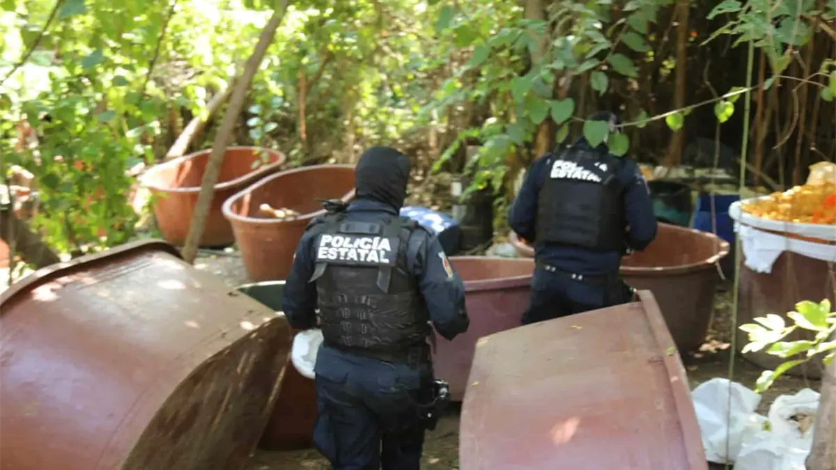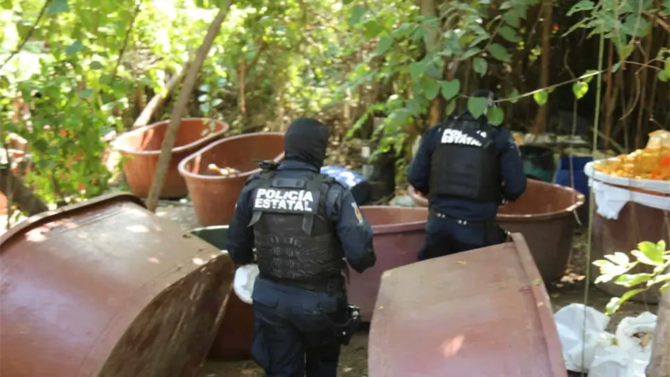 Culiacán, Sin.- Integrantes de una Base de Operaciones Interinstitucionales conformada por elementos de la Secretaría de la Defensa Nacional, Secretaría de Marina Armada de México y la Policía Estatal Preventiva, aseguraron un laboratorio clandestino activo, en las inmediaciones de los poblados Chiqueritos y Estación Abuya, al sur de Culiacán.