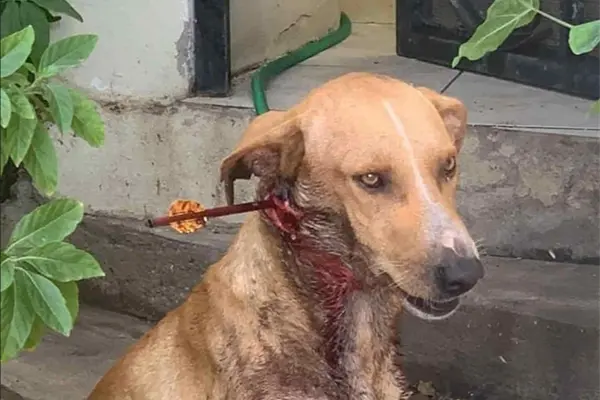 Culiacán, Sin.- Fue la mañana de este domingo cuando vecinos del sector Villa Fontana reportaron la presencia de un perro llamado “Romeo” quien se encontraba llorando, ya que un desconocido le atravesó la cabeza con una flecha.
