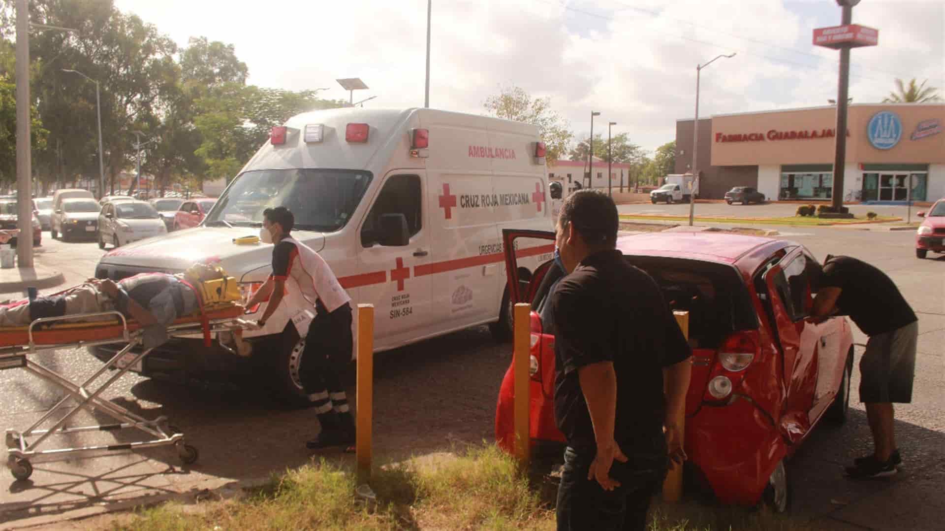 Los Mochis, Sin.- Un aparatoso accidente vial se registró la mañana de este lunes en el concurrido cruce del bulevar Centenario y Belisario Domínguez, al poniente de la ciudad.
