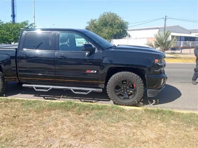 Se trata de una camioneta Chevrolet Cheyenne, modelo 2017, color negro, doble cabina y con placas de Baja California CF-26511.