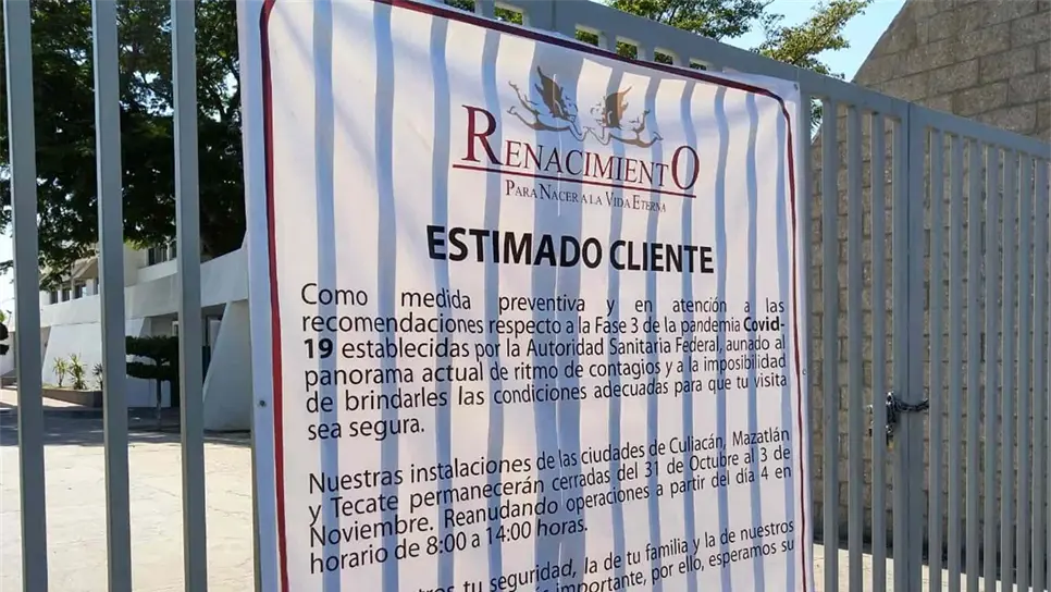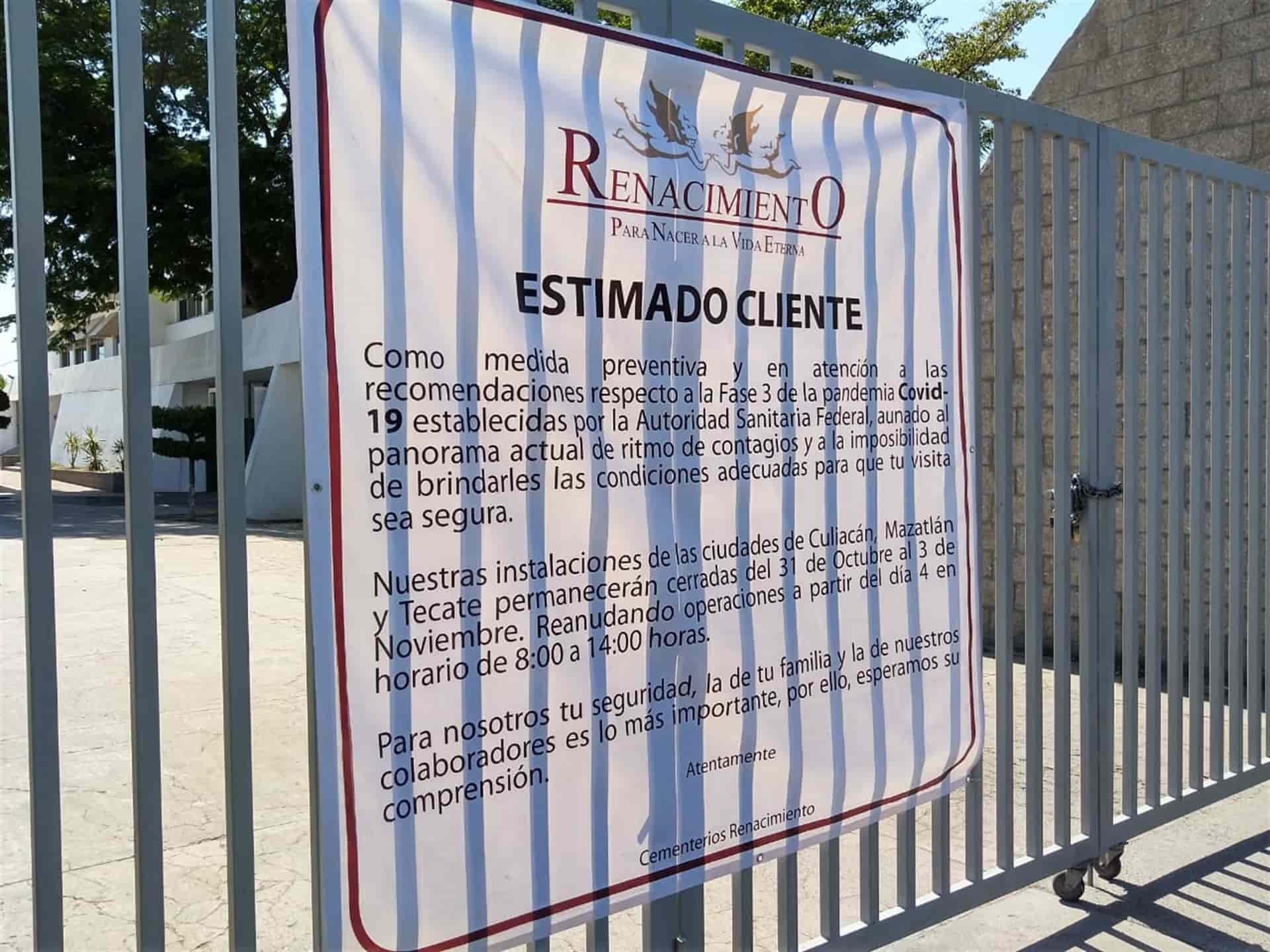 Cierran Panteones Renacimiento en Mazatlán y Culiacán
