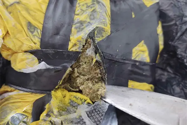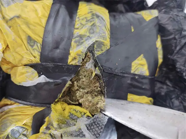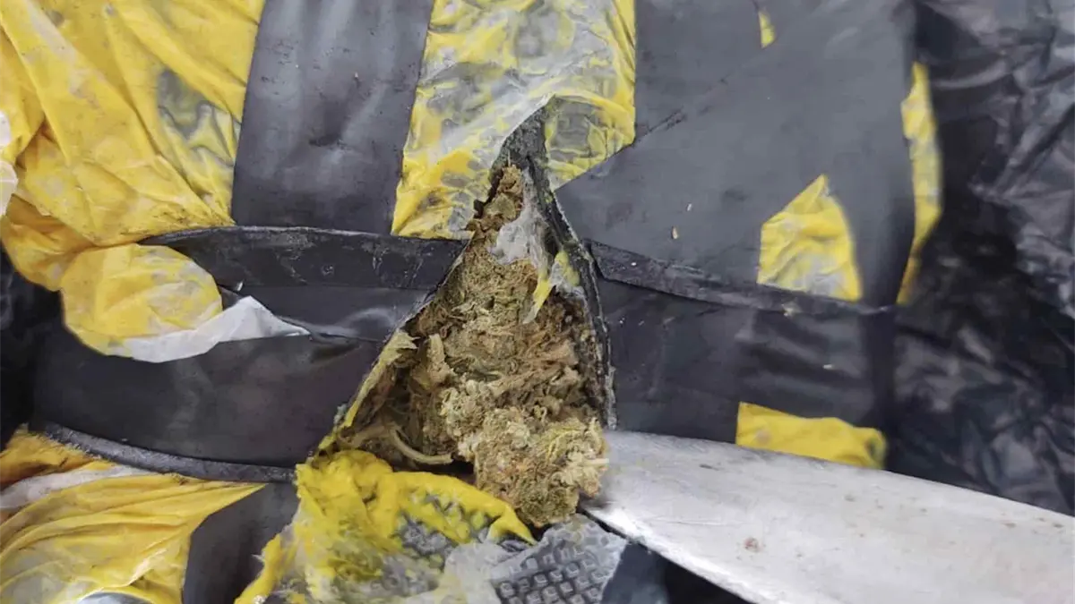 Al inspeccionar los paquetes hallaron una bolsa de plástico con un DVD que ocultaba dos envoltorios con 365 gramos marihuana, así como tres botellas que trasladaban aparentemente salsa de chamoy y ocultaban en calcetines los cargadores para arma de fuego calibre 40.