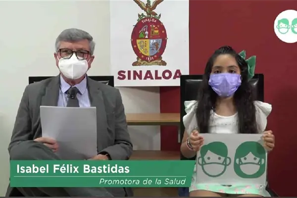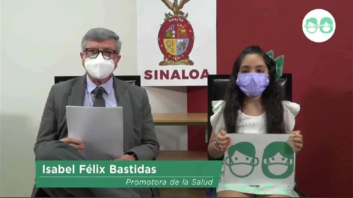 En compañía del Secretario de Salud, Efrén Encinas Torres, la niña Isabel explicó que es importante que las personas se laven las manos, usen cubrebocas y respeten la sana distancia.