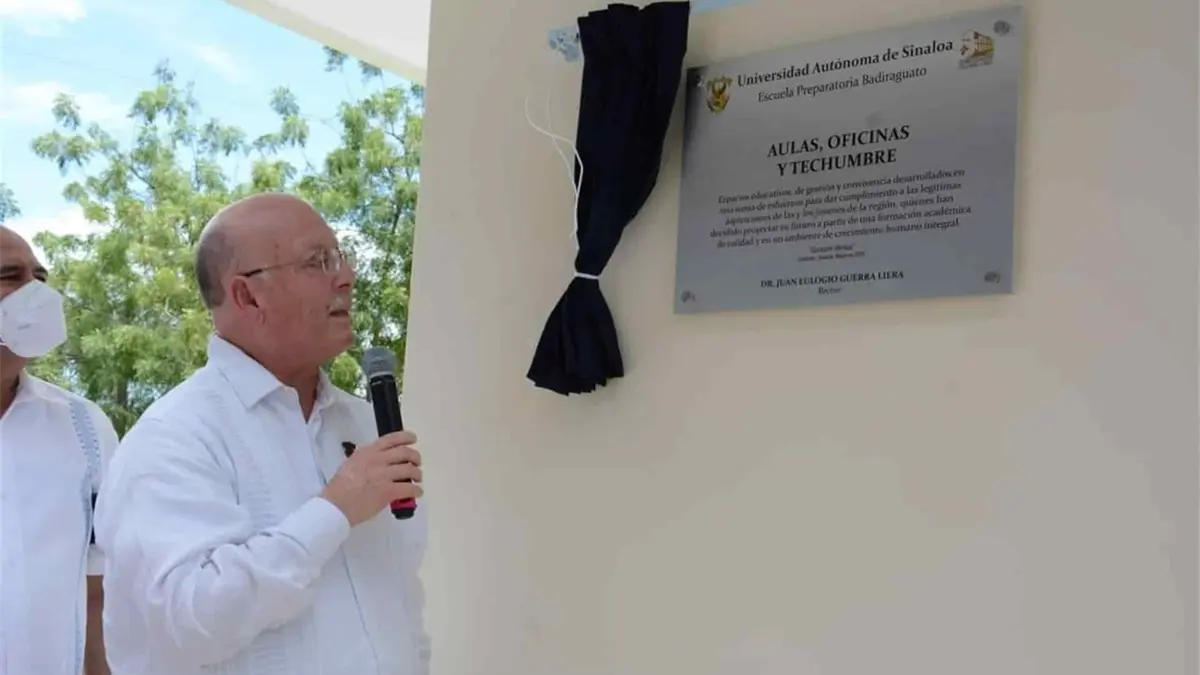 Badiraguato, Sin.- La Unidad Académica Preparatoria Badiraguato cuenta ya con edificio propio al hacer el Rector de la Universidad Autónoma de Sinaloa (UAS), Juan Eulogio Guerra Liera, la entrega formal de las instalaciones a la comunidad estudiantil y docente del plantel.
