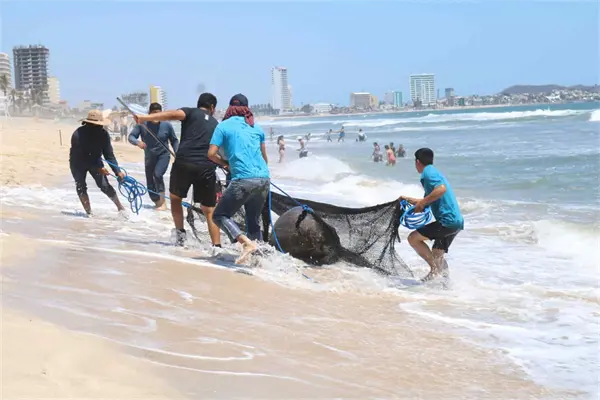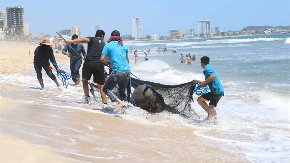 Fueron personal de Acuario Mazatlán, elementos de Protección Civil y del Escuadrón Acuático quienes lograron el rescate de este ejemplar, el cual se especificó que es un macho de entre 6 y 7 años de edad, con un peso de 250 a 300 kilogramos.