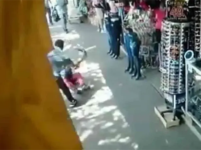 Los Mochis, Sin.- A través de la filtración de unos videos de las cámaras de vigilancia del área, se logró captar el momento en que un locatario del Mercado Zona 030 agrede a una mujer con un cinto.