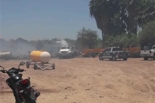 Trascendió que los trabajadores se encontraban laborando cuando de pronto observaron que salía humo de entre unos implementos agrícolas, por lo que de inmediato dieron aviso al 911 para recibir auxilio..
