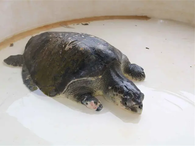 Mazatlán, Sin.- Ante el llamado de auxilio para proteger a una especie catalogada en peligro de extinción, Acuario Mazatlán rescató una tortuga golfina en la playa de la zona Sábalo Cerritos.