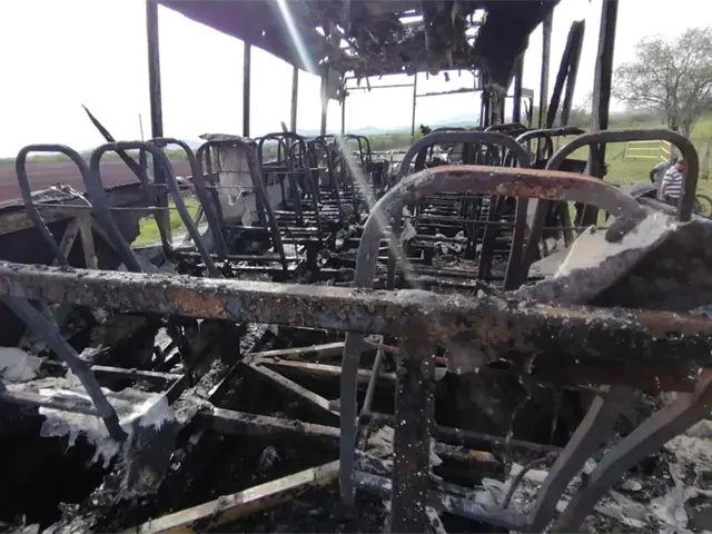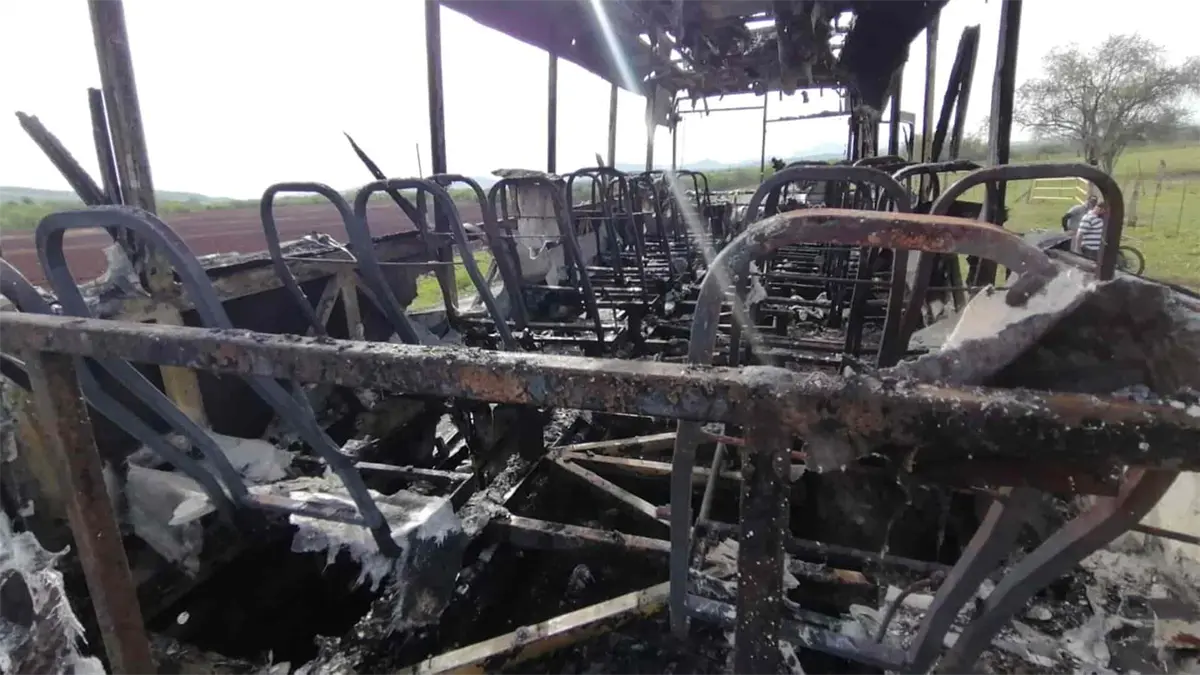Culiacán, Sin.- Integrantes del escuadrón de Bomberos Culiacán se trasladó al poblado de La Laguna Colorada, ubicado el sur de Culiacán, donde apagó el fuego que devoró por completo un camión de pasajeros de ruta foránea.